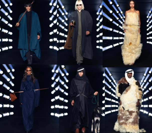 • الخامات والتقنيات: تطريز السدو استخدم كعنصر يشير إلى الحِرفة السعودية، لكن مصمّم برؤية معاصرة؛ الفروة والمعاطف الكلاسيكية أعيدت قراءتها في ضوء الحركة والتجريد — ليس للتنويع فقط، بل لتسليط الضوء على الدقائق التي تشكّل الحرف