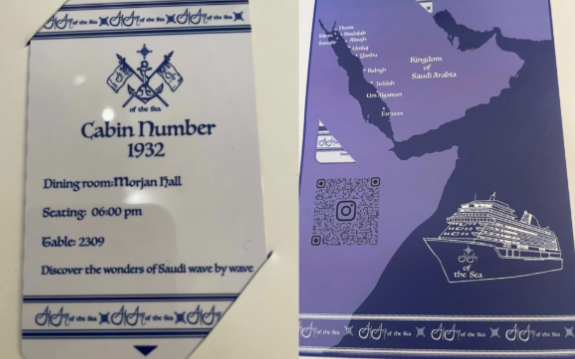 الأزياء نفسها مستوحاة من هذه الرحلة: الميدراس، الكروشيه، تطريزات مستوحاة من أحاجي البحر، وألوان مستلهمة من الرمال والأفق الأزرق للبحر الأحمر..كل قطعة تحمل لمسة من الفخامة العالمية، لكنها تبقى متصلة بالتراث المحلي، قوائم الطعام والمرافق كلها مزجت بين المحلي والعالمي، لتعكس توجهات ثقافية متكاملة: السينما، الموسيقى، الرياضة، الخط العربي، الحرف اليدوية، الاستدامة باستخدام منتجات محلية، وكل ذلك ضمن رؤية مشاريع البحر الأحمر والسياحة في السعودية